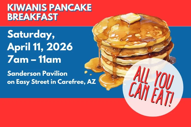 The Kiwanis Club of Carefree will hold its annual PANCAKE BREAKFAST on Saturday, April 11th in downtown Carefree, from 7 a.m. until 11 a.m.